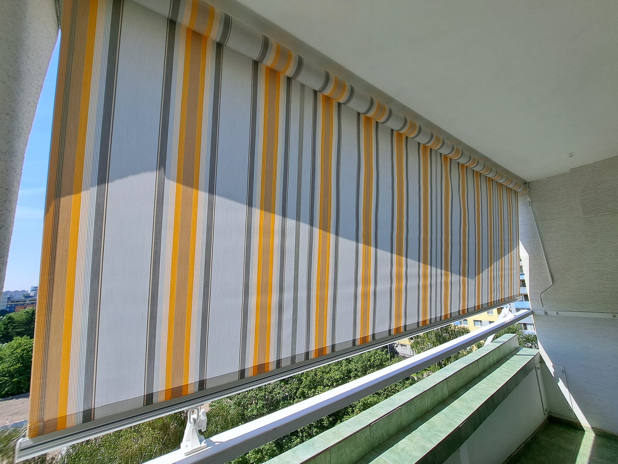 Copertina UNION este o soluție elegantă și funcțională pentru umbrirea ferestrelor, vitrinelor, balcoanelor și a altor spații exterioare. Designul său cu brațe laterale de ridicare asigură tensiunea optimă a stofei și stabilitatea întregii structuri, menținând copertina fermă și uniformă în orice poziție.